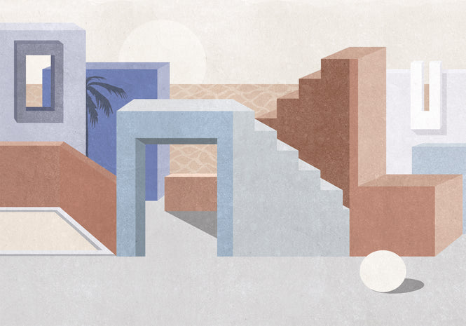 バルセロナ出身の建築家リカルド・ボフィルの空間デザインにインスパイヤーされた作品。彼のピンクカラーの建築はとても有名。