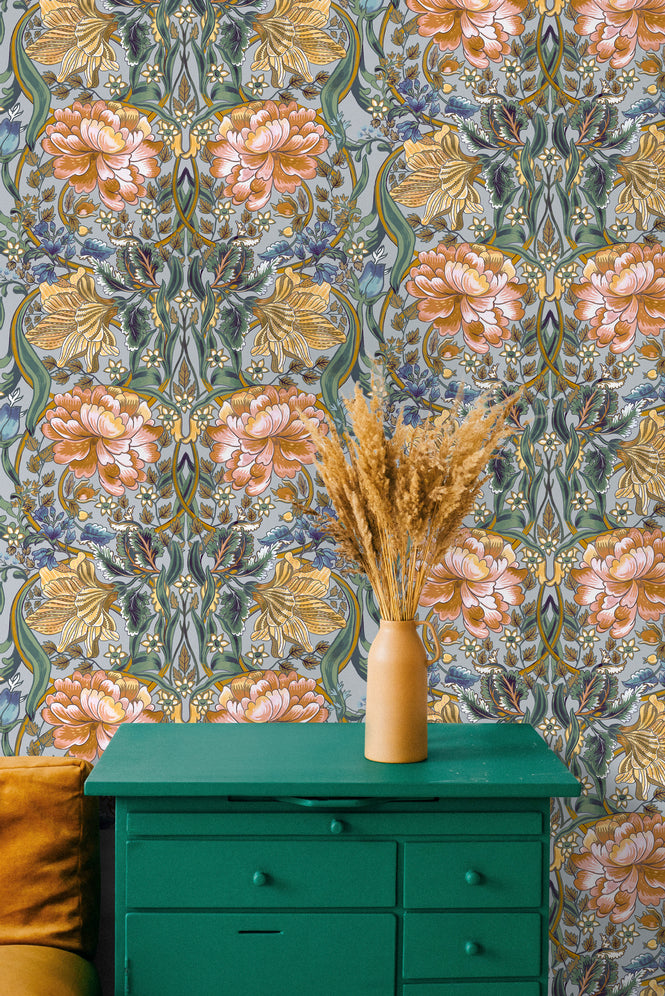 フランス語で「良き時代」「美しき時代」を意味するBELLE-EPOQUE(ベル・エポック)は、クラシックなフローラルデザインの壁紙です。