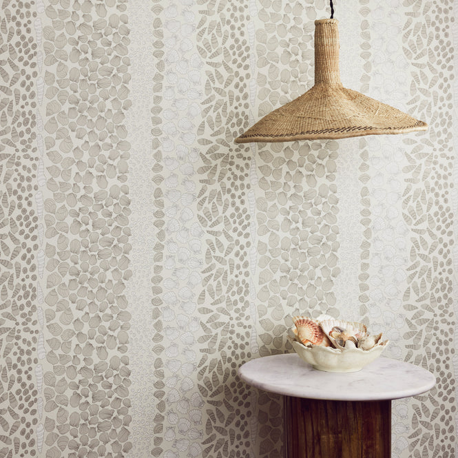 Shells Wallpaperは、バカンスの度にコレクションした貝殻からインスピレーションを得てデザインされた壁紙です。浜辺で貝殻を集めながら波のささやきに耳を傾ける、そんなシンプルな喜びを再発見させてくれます。