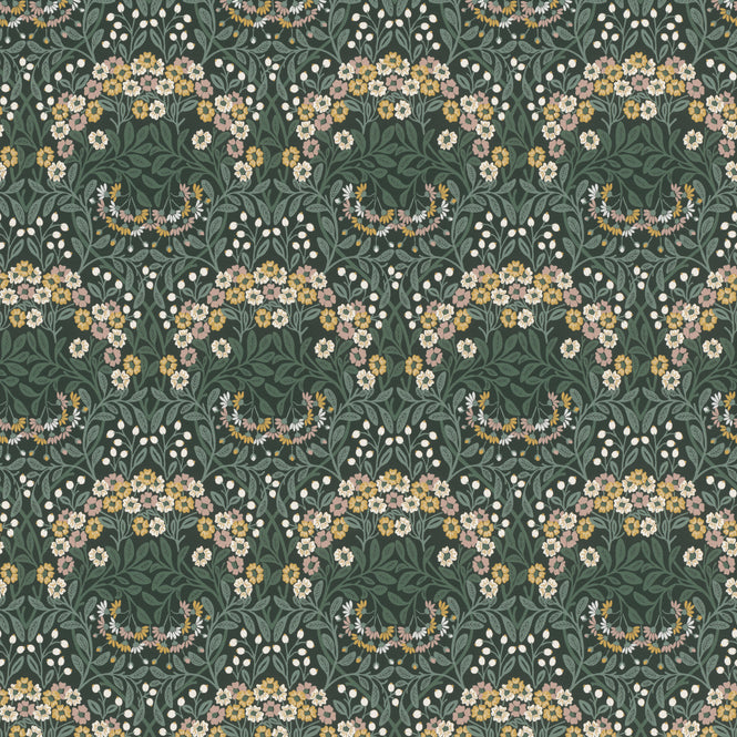 手書き風のブーケが古典的なダマスク柄のようにデザインされています。