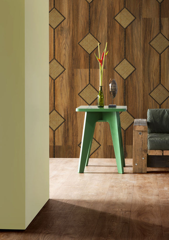 「Wainscoting」は横貼りすることで、本物の腰壁のようになるんだ。NLXLが培ってきた技術を元に作られた壁紙は