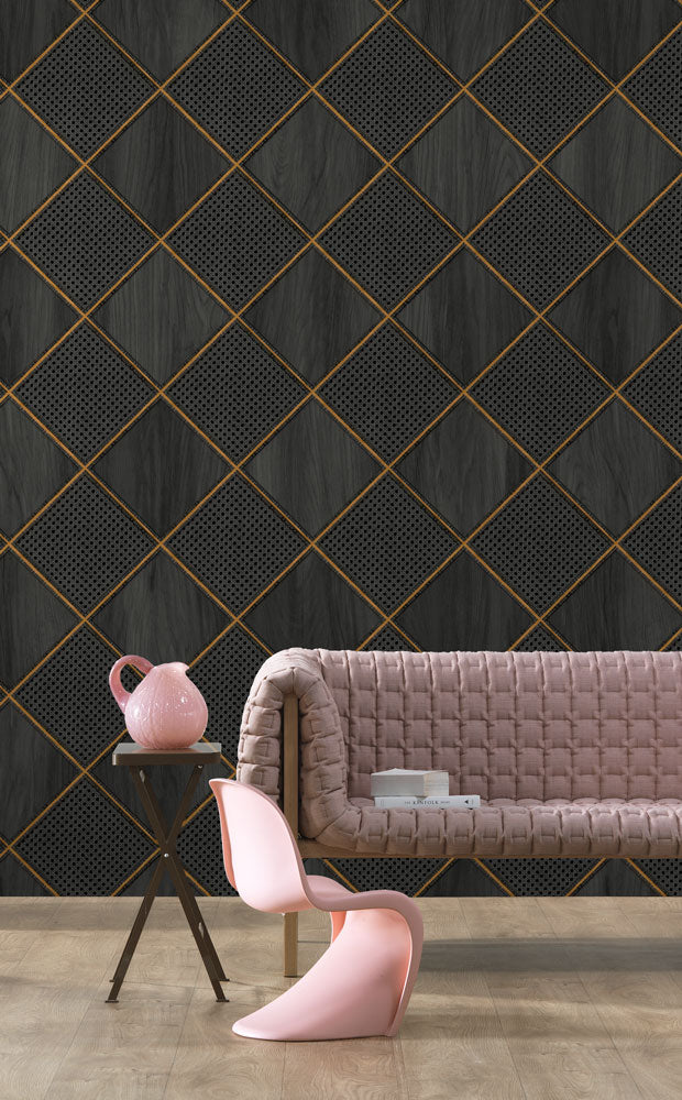 「Wainscoting」は横貼りすることで、本物の腰壁のようになるんだ。NLXLが培ってきた技術を元に作られた壁紙は