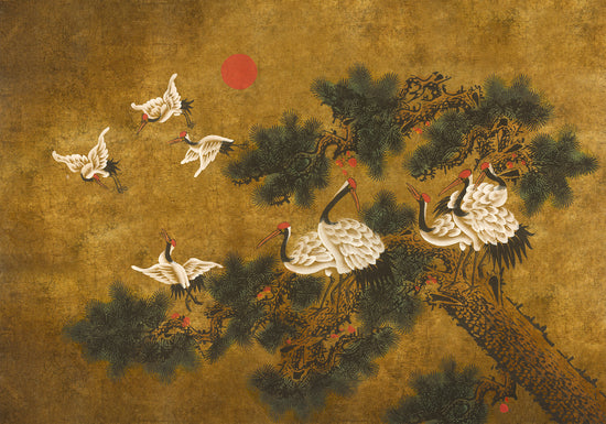 日本を代表する丹頂鶴と松のモチーフを大きなサイズの壁画的壁紙に仕上げました。