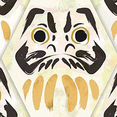 達磨さんは円満や繁盛を意味する招福のシンボル、亀甲文様は長寿やご縁を延ばす意味を持つ柄。亀甲文様との相乗効果が合ったらいいな。願い事をする時、願いが叶ったら、お好きな達磨さんにお好きな目入れをしてみては?