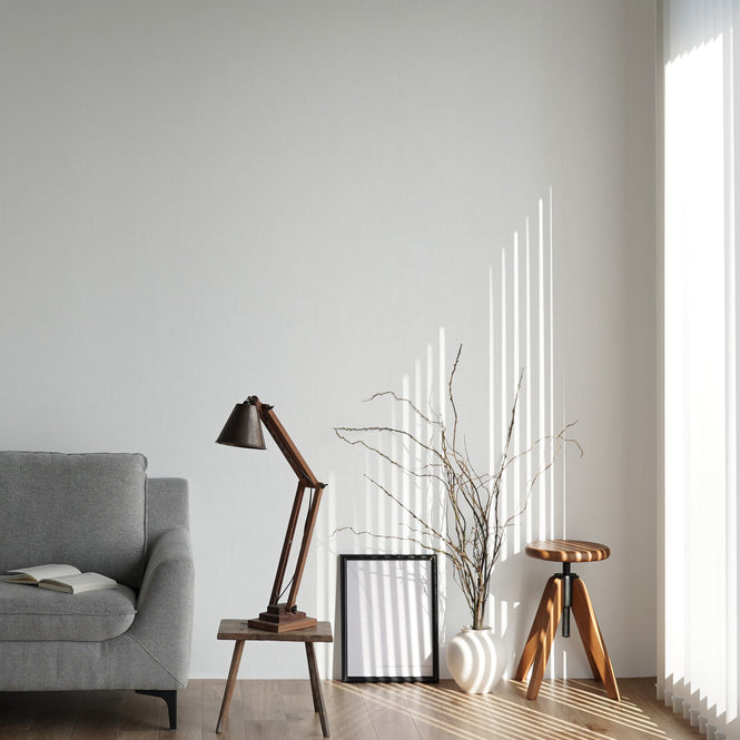リネンの素材感をビニルのエンボス加工でリアルに表現している。ノンリピートデザインのためロスなく施工が可能。ナチュラルな温もりを出したい空間におすすめ。コーディネートしたいインテリアエレメントはウッドフロア、ファブリック調シート、観葉植物、ウールラグ。