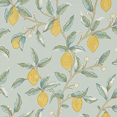 ウィリアム・モリスのデザインの中で最も愛される壁紙『Fruit』に描かれているレモンからインスピレーションを受けた壁紙。