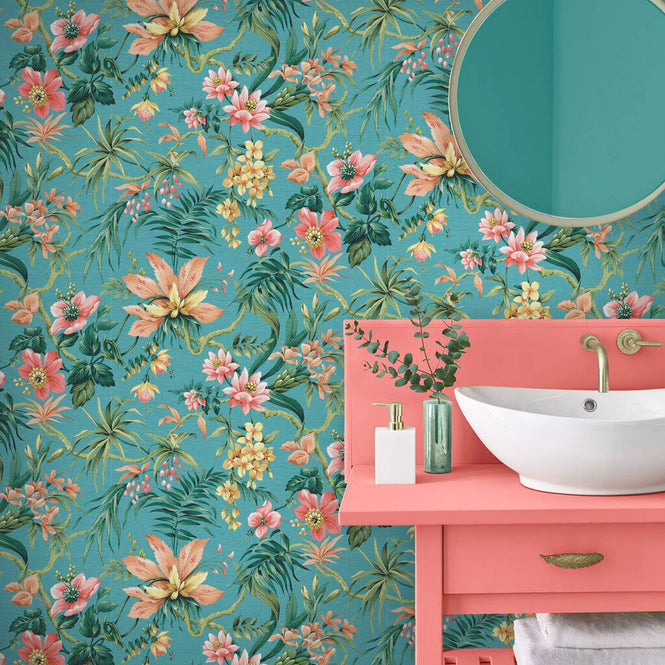 南国情緒漂うカラーリングで個性的な空間が演出できます。温かみのあるターコイズブルーは風水では東にしつらえると若さや発展の運気をもたらすようです。