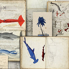 様々な地中海の生物や海洋地理、その周辺で発見した鳥や植物が記されている。その日記帳は細部に拘った陰影により、立体的に見えるだろう。