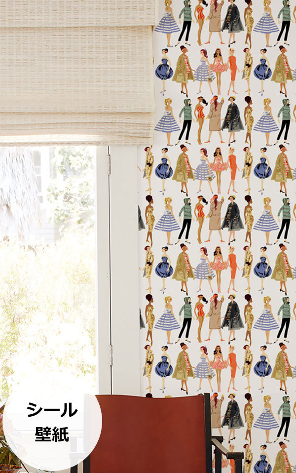 はがせる シール壁紙 wallshoppe / Barbie x wallshoppe / Vintage Illustration Cream