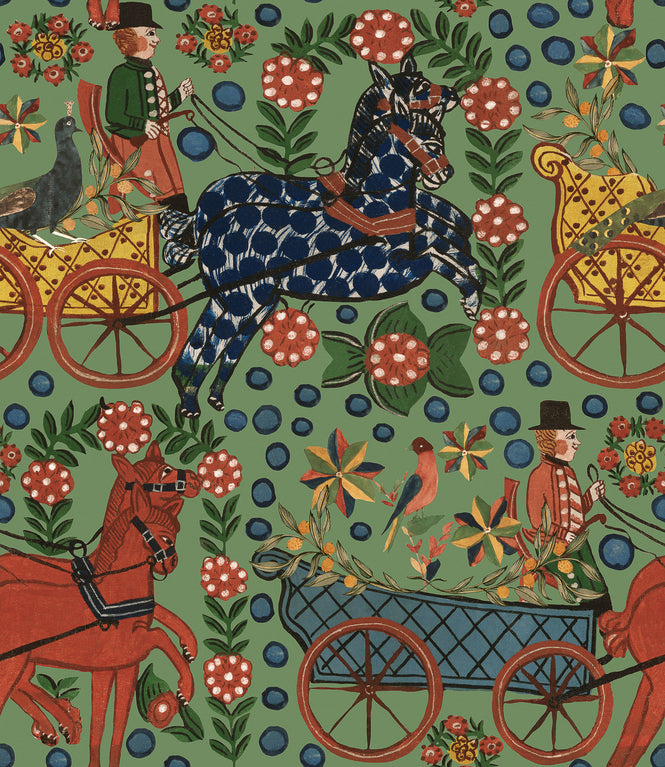 カラフルな馬車、シルクハットをかぶった御者、ブルードットの馬のパレードは、地元の人々が厳しい冬将軍の到来の前に春の成長とみのりを祈願して祝う楽しい雰囲気を再現しています。
