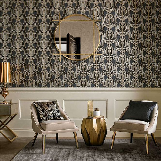 ブラック&ゴールドのアールデコの壁紙は