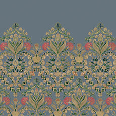 ダマスク柄が壁画的に描かれて、天井高や切り取る位置によってパーソナルな表現ができるデザインの壁紙です。