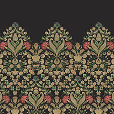 ブラックの背景色はドラマティックに柄を引き立たせています。