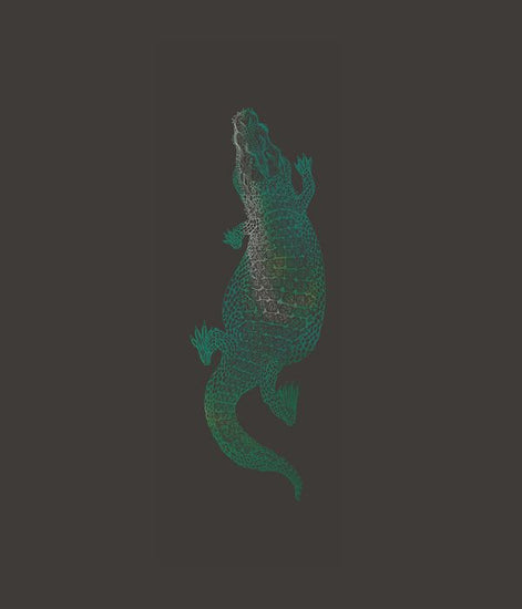 非常に細かく描かれた、インパクトのある大きなワニのイラスト作品。