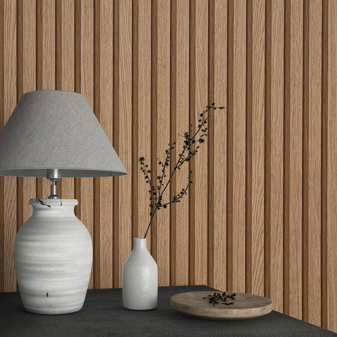 トレンドのリブウッドパネルにインスパイアされた壁紙。