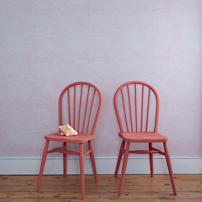 近づいてよく見てみると、青い波に夕焼け色のようなピンクの波がとても綺麗に映えています。