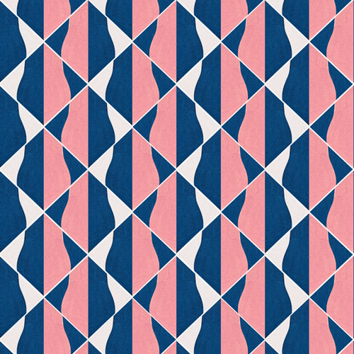 ストライプとジオメトリックのハーモニーが不思議な感覚を呼ぶデザイン。至近距離と俯瞰的に見る時では違った印象を受ける3色展開。