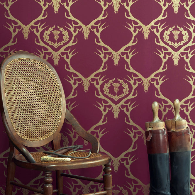 牡鹿の角、スコットランドの国花であるアザミで構成されたダマスク。