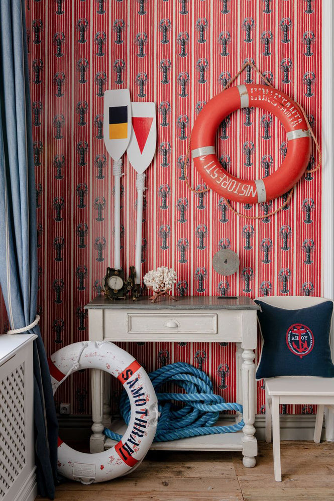 エーゲ海の真髄を思わせるデザイン、MEDITERRANEAN LOBSTERSの壁紙はリッチなマリンリゾート感が漂います。