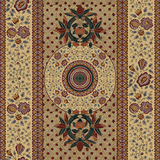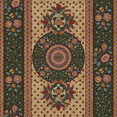 ストライプデザインは可憐な花、ステッチのようなパターン、サークルのモチーフに配置された繊細な葉で埋め尽くされ、チロルのエッセンスを閉じ込めた普遍的なデザインです。
