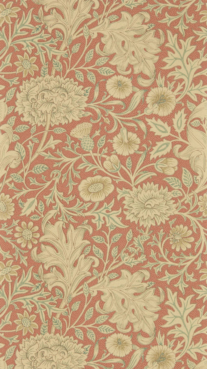 モリス商会のアーカイブデザインからインスピレーションを受け、アカンサスの葉と咲き誇る花々が特徴のデザイン。