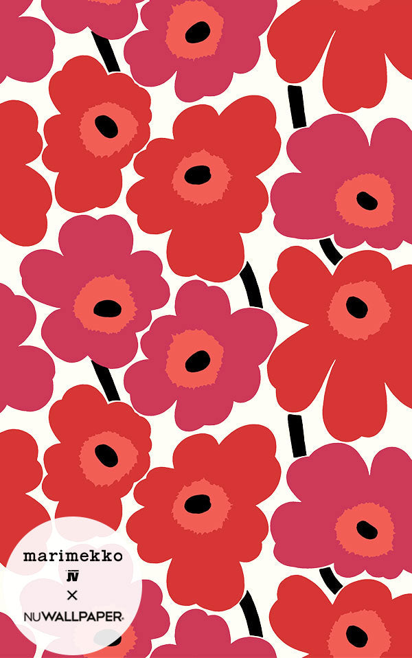 【限定数】はがせる シール 壁紙 marimekko × NU WALLPAPER / Red Pieni Unikko / MKS4492