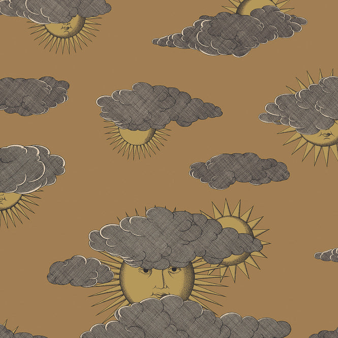 Piero Fornasetti(ピエロ・フォルナセッティ)が1950年代にデザインした「Sole di Capri」にインスパイヤーされたデザイン。Piero Fornasetti(ピエロ・フォルナセッティ)は長い間カプリ島に情熱を注ぎ、この伝説の島を訪れることなく、想像力だけで象徴的なデザインを生み出したそうです。彼はその後家族を連れてカプリ島で休暇を過ごし、1960年代には島に一時的にブティックをオープンしました。擬人化された太陽と雲を組み合わせるというアイディアは、1950年にピエロが描いたヘッドスカーフのスケッチに初めて登場します。このコレクションではユニークなインテリアを演出する壁紙になっています。