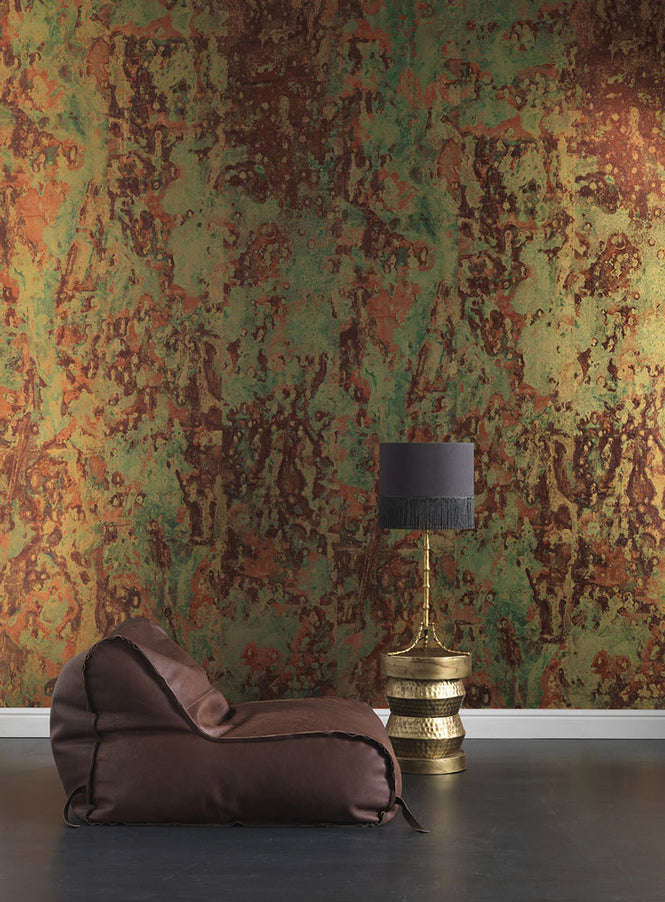 元祖スクラップウッドウォールペーパーの誕生から3年..2013年に、NLXL社が8種類のスクラップウッドウォールペーパーのニューコレクションを発表。 2011年にはスクラップウッドウォールペーパーシリーズがICFF(NEW YORK)で Editors Awardsを受賞。それから、数多く新聞や雑誌で紹介されました。(The New york Times, Daily News, Country Living, Shelterpop, Remodelista, Core 77, Cup of Jo, Design Boom, Hype Beast, Design Sponge等) そして2015年には‘Materials Wallpaper’コレクションがデビュー。身近な素材として大理石、ベニヤ板などのモチーフが取り入れられています。NLXL Lab 2017コレクションでは2つの新作を発表しました。 銅板の壁紙は、彼のアトリエで10mの銅板に数ヶ月間様々な種類の酸を注いだ結果、偶然に生まれた産物が見事なデザインになっています。