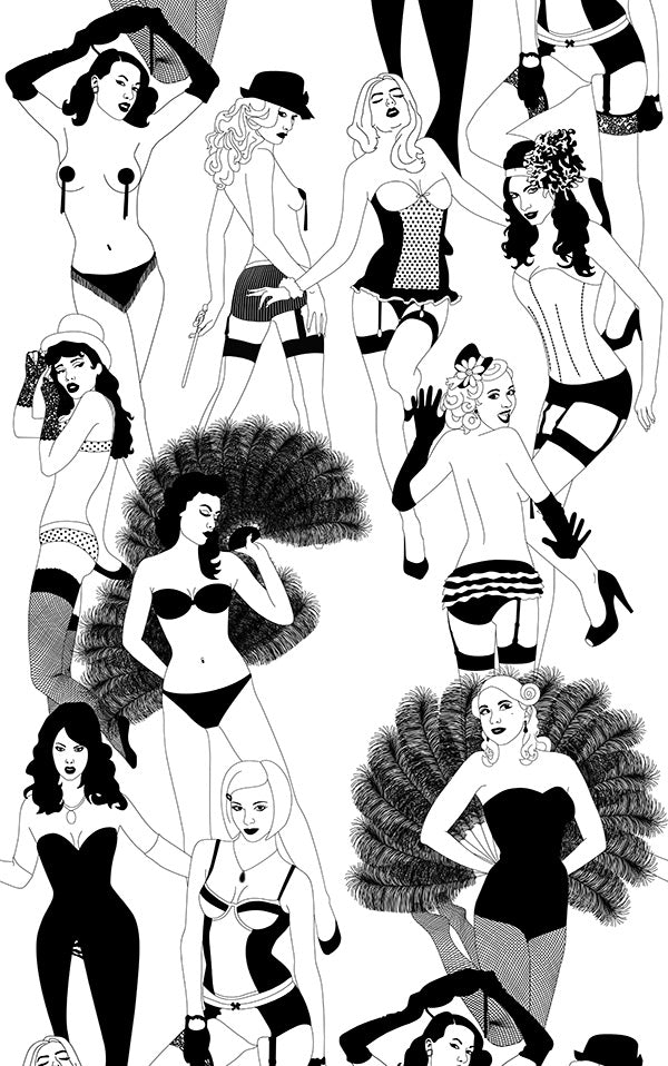 手描きのイラストから作られるデザインのテーマは、レトロ、ユーモア、ラブリーな女性、モノクロ。
