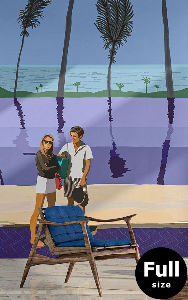 ヤシの木が揺れるカリフォルニアのビーチ。