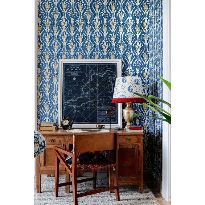 伝統的な深海の青とフレッシュなレモンイエローのコントラストが美しいZAKYNTHOSの壁紙。
