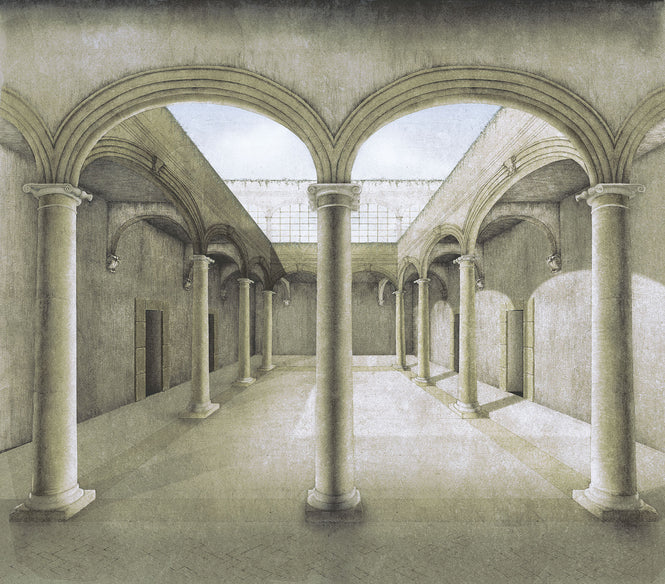 クラシック建築の美しいアーチの連なりで、奥行き感じるデザイン。