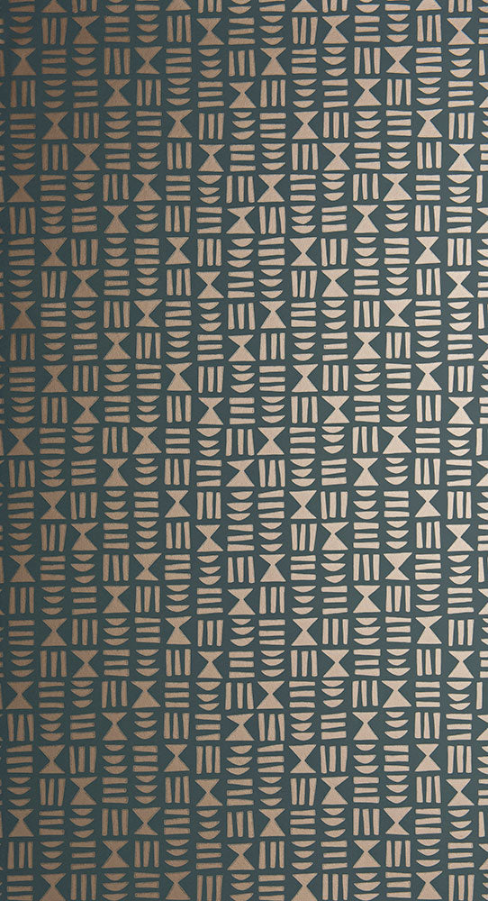 エジプトの象形文字が縦横にきっちり整列されたようなジオメトリックデザイン。サーフェイスプリント技法を採用しています。