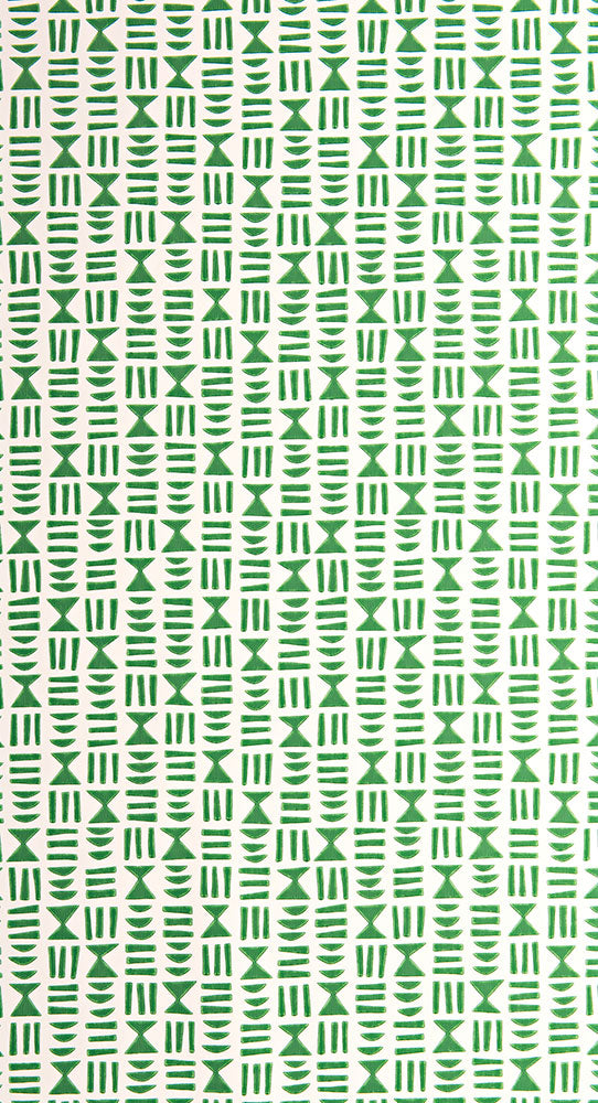 エジプトの象形文字が縦横にきっちり整列されたようなジオメトリックデザイン。サーフェイスプリント技法を採用しています。