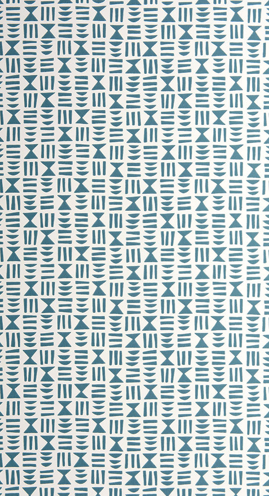 エジプトの象形文字が縦横にきっちり整列されたようなジオメトリックデザイン。サーフェイスプリント技法を採用しています。
