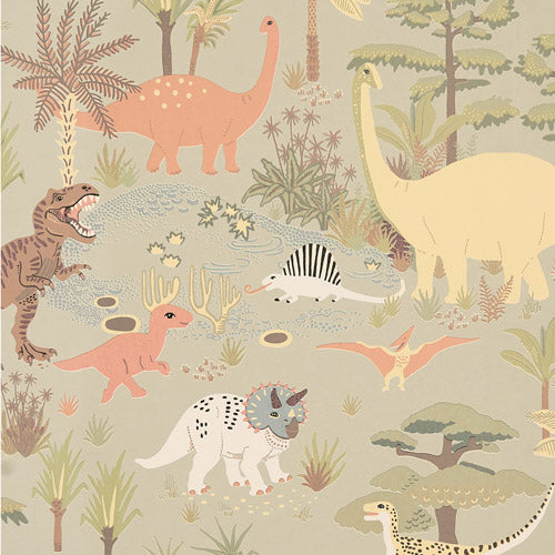 輸入壁紙 Majvillan / VINTAGE JOURNEY / Dinosaur vibes Soft green 154-02