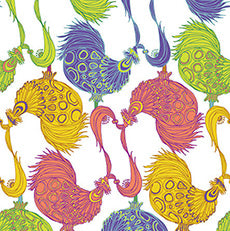 ピンクやブルー、グリーン、イエローの4色の鳥が並ぶホワイトを基調としたカラーリング。