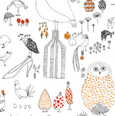 線画で描くイラストはシンプルながら、1つ1つに様々な表情とストーリーが感じられる。