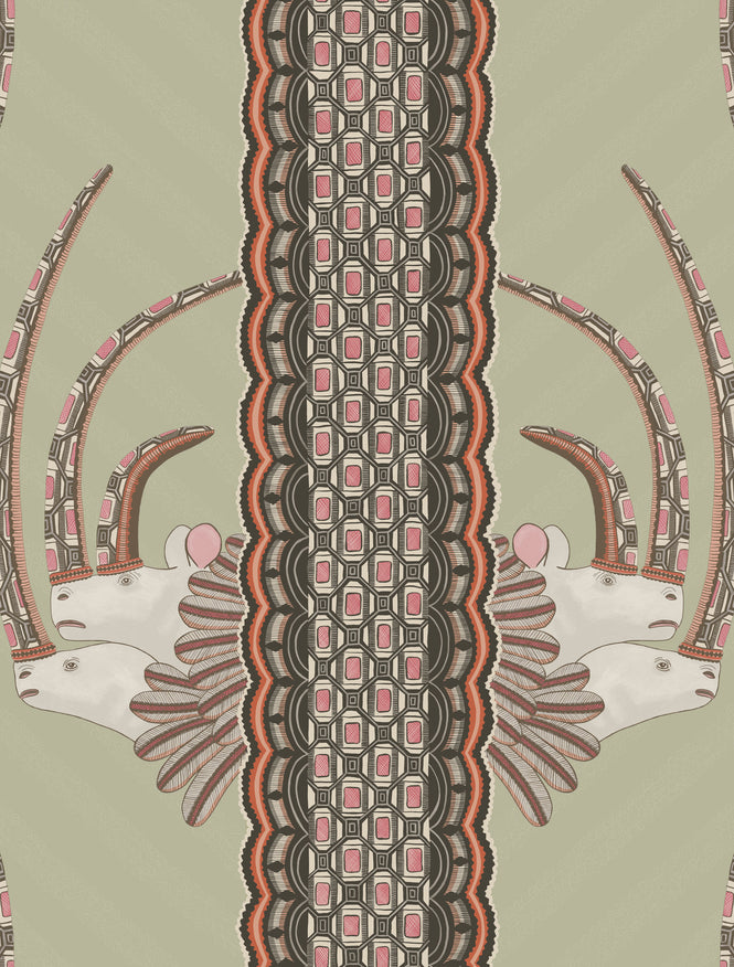 そのストライプデザインから装飾的な角と羽をまとった2頭の