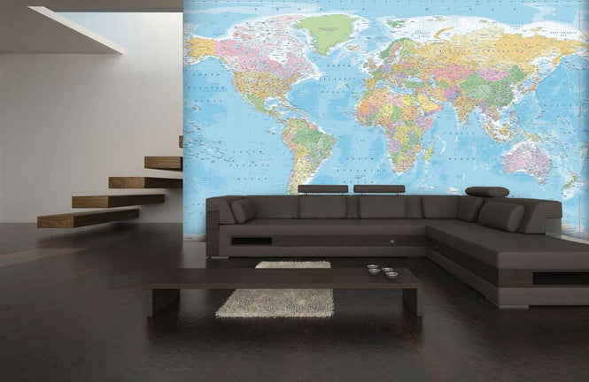 Zoom 【限定数】1 Wall / XXL Wall Mural / BLUE WORLD MAP