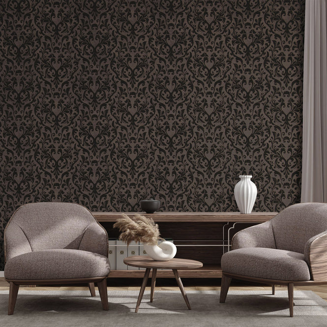 クラシックなオーナメントが優雅にあしらわれたダマスク調のデザインです。エンボス加工とレリーフ、ほのかな光沢のきらめきが見事に調和し、上品な存在感を放ちます。