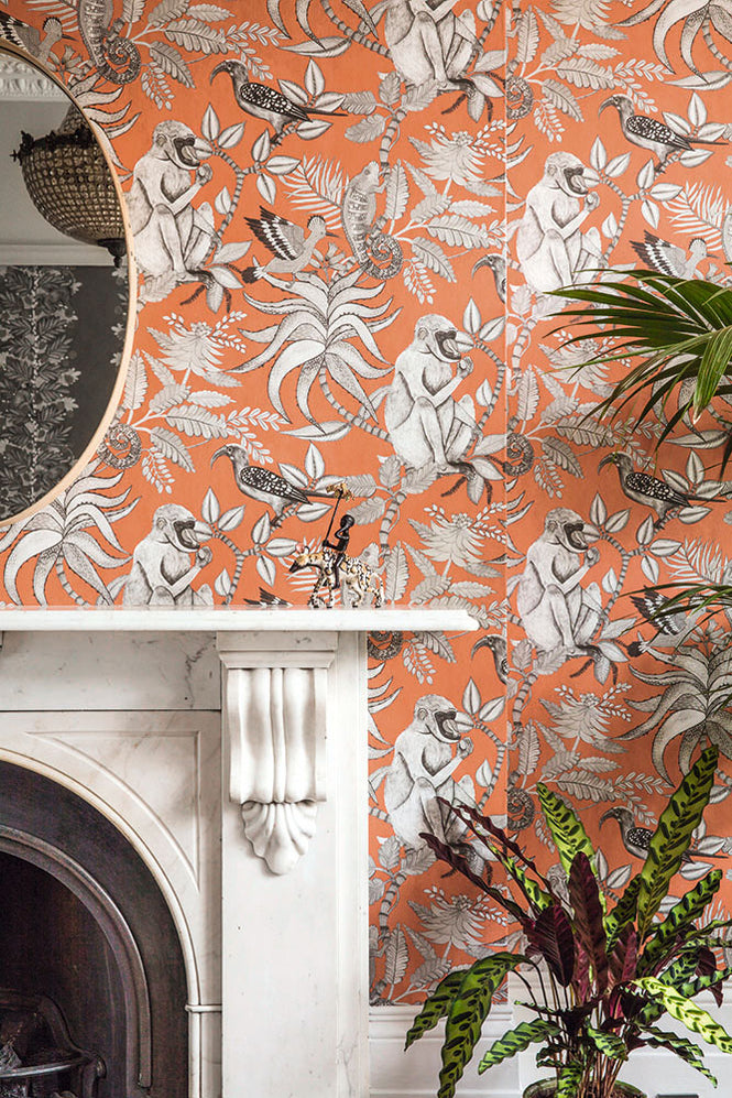 ヒヒやカメレオンが花咲く珊瑚樹でひなたぼっこしている光景が