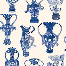 古典的な花器に、アフリカを代表するヒョウ・オウム・ライオン