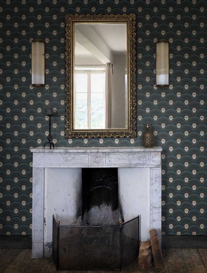 Roaring Twenties(アメリカ1920年代)アールデコからインスピレーションを得た大胆なデコマティーニグラフィックプリントは、ティール、ゴールド、ブラックの絶妙な色でアールデコの豪華さをインテリアにもたらします。