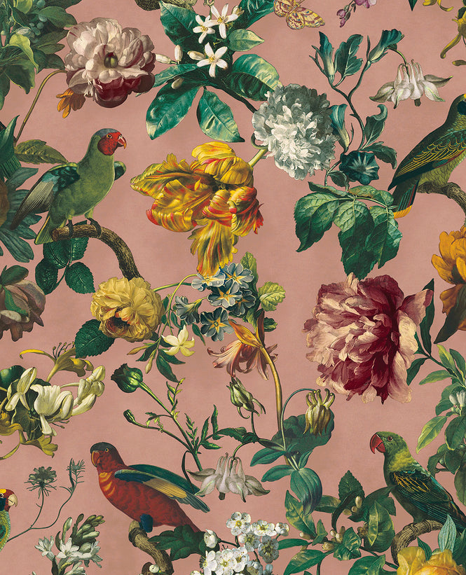 デザインはキャンバスにふんだんに描かれた花、鳥、蝶。古代のエッチングを抜粋したマット紙に描かれた花の線画をご堪能ください。