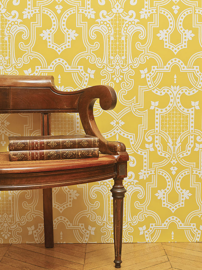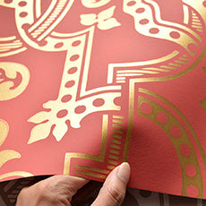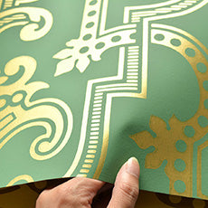 様々なパターンが上品な細工を生み出し、色彩豊かな壁紙に