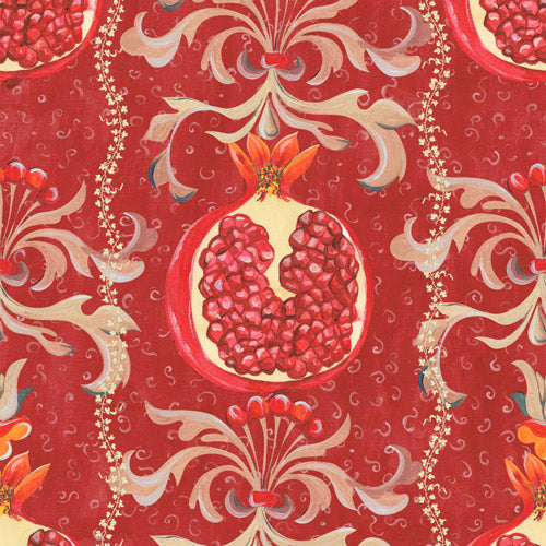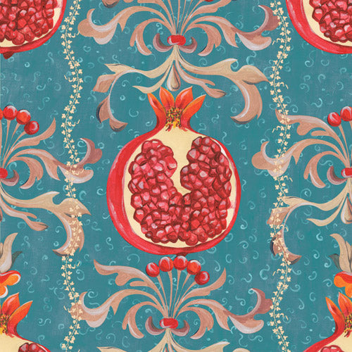 ザクロは「豊富」と「繁栄」のシンボルです。詳細に描かれたザクロの周りに優美な花びらと蔓が舞い踊り、王の邸宅パラッツォに見られるような柄になります。この高級感と遊び心のあるデザインをキッチンやリビングに大胆なアクセントとしておすすめです。