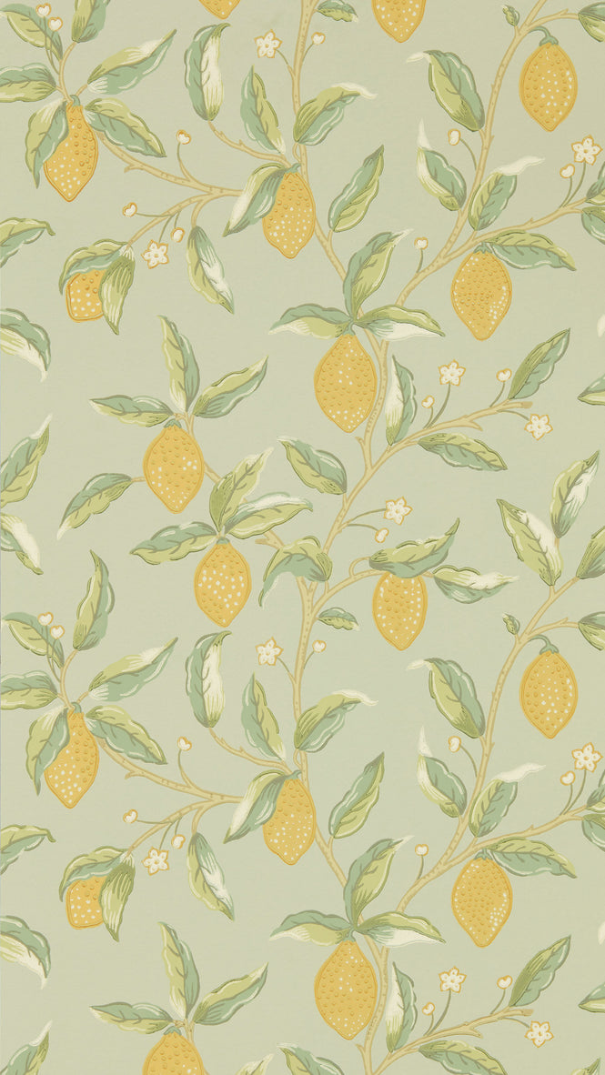 ウィリアム・モリスのデザインの中で最も愛される壁紙『Fruit』に描かれているレモンからインスピレーションを受けた壁紙。