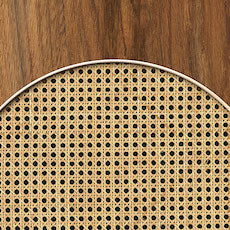 座面にはシンプルなラタン編みが取り入れられており、