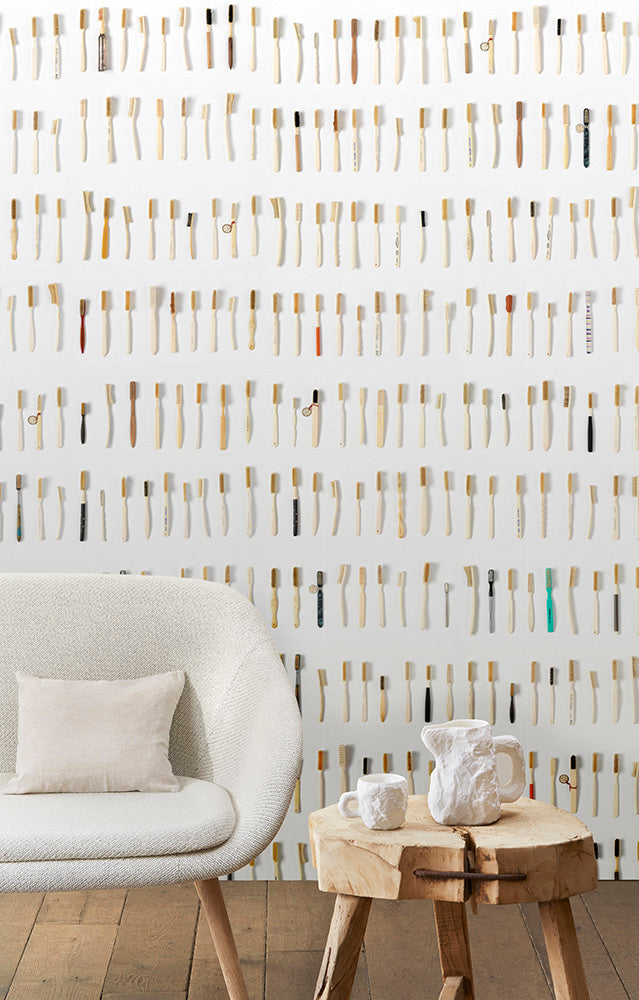 彼が収集している歯ブラシやハンガー、スプーンなどの